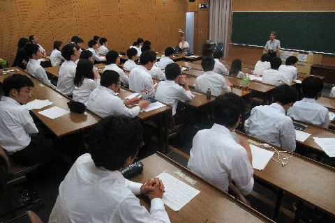 Students surrounding Prof. Hasebe and Dr. Baba (invited lecturer)