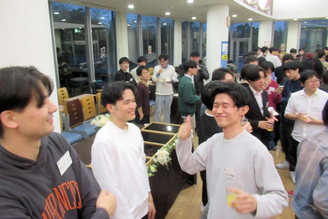 コロナ禍の期間中は開催されていませんでしたが、今年度復活しました。新型コロナウイルス対策で会場の人数制限が設けられているため、以前のように3回生と4回生を招くことができず、4回生のみの歓迎会となりました。