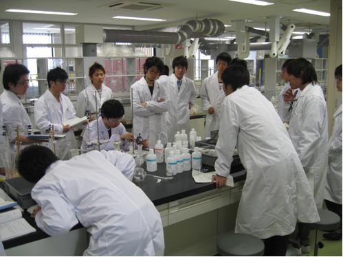 平成5年の改組により,化学系の旧学科は学部レベルでは「工業化学科」に一本化されました。これに伴い,新入生は共通カリキュラムによる基礎科目履修後,3年生で一定の定員比率で反応化学,物性化学と化学プロセス工学の3つのコースに分かれ,将来の専門分野に応じた教育を受けるようになりました。また,平成17年からは入学後1年半の共通カリキュラムに続いて,2年生後期に一定の定員比率で創成化学,工業基礎化学と化学プロセス工学の3つのコースに分かれるようになりました。